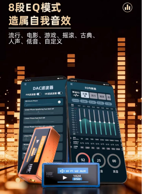 而AE8直接翻了四倍,实打实能硬解DSD1024,连PCM 768kHz/32bit的高清格式也能轻松拿下,目前便携小尾巴里,找不出第二款能做到的。说直白点,普通小尾巴听母带音乐,就像把4K电影压成标清看,糊得不行;而AE8能原封不动还原母带音质,歌里的乐器泛音、歌手换气的小细节,全都能听得清清楚楚,完全没有音质缩水的感觉,这才是真正的高清听歌体验。